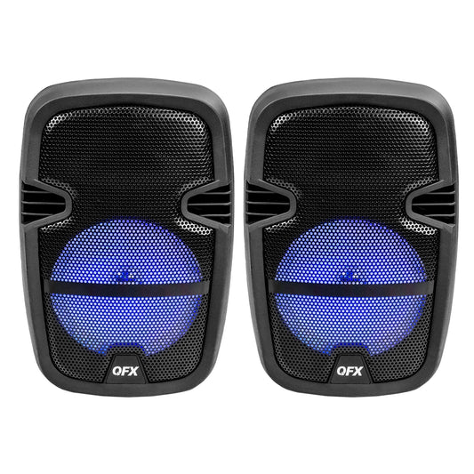 PBX-808TWS TWO 8 INCH PORTABLE PA SPEAKER SYSTEMS with 2 SPEAKERS, 2 SPEAKER STANDS, 2 WIRED MICR...