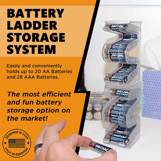 Battery Ladder™ for 20 AA & 28 AAA Batteries | Clear Vertical Battery Storage Cases | Stackab...