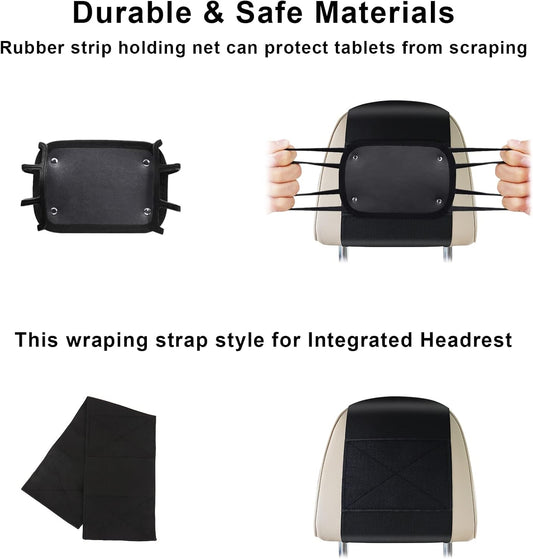 Car Headrest Mount Holder, Tablet Holder for Kids in Back Seats, Anti-Slip Strap and Holding Net,...