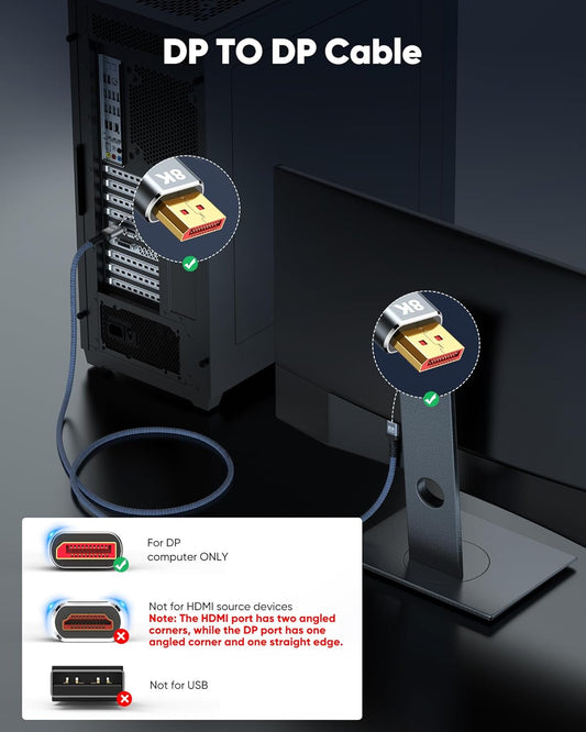 Displayport Cable 1.4 10Ft, 8K DP Cable | 8K@60Hz, 4K@144Hz, 2K@240Hz 2K@165Hz | HBR3, 32.4Gbps, ...